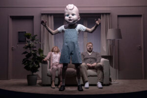 Forestillingen virker nærmest som en charmerende og dog alvorlig barneleg, som stikker af i fantasien om, hvordan verden kunne komme til at se ud. ’Så sagde vi, at man skulle bruge sølvpapirshatte til at beskytte sig, og at man kunne anskaffe sig et teknologisk barn med et kæmpe dukkehoved, som man selv kunne designe. Og så sagde vi, at ledelsen var ond og gik i pels og elskede appelsinvand – og så skulle alle andre også elske appelsinvand ellers blev han sur…’ Nogle aspekter er rigtig underholdende, andre har fået lidt mere, end de kunne trække. Men jeg bliver faktisk ramt. Det ender med at blive en temmelig ulækker sci-fi-leg, som jeg ikke har lyst til at være med i. Jeg vil ikke være med til, at vores verden bliver som den på scenen.