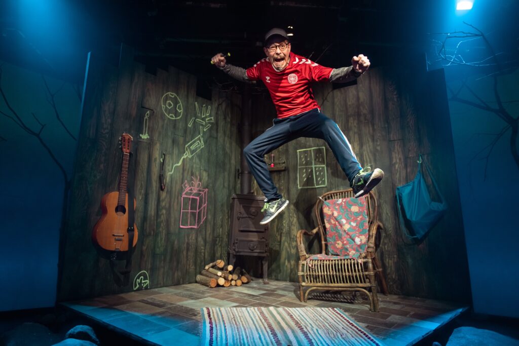 Børnene har taget deres forældre med i teatret. Der oser af popcorn og flyverdragten ligner næsten en børneuniform. Det er lørdag, det er koldt og der er modvind i alle retninger, men vi nærmer os julen så humøret er højt. Jeg føler mig en anelse malplaceret uden et barn, men lige så snart forestillingen begynder glemmer man hurtigt alle sine fjollede bekymringer. Nu skal vi nemlig være sammen med Chapper de næste 45 minutter.