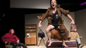 Forestillingen byder på hamrende gode skuespilpræsentationer, der gør denne vanvittige fortælling udholdelig at se. Skuespillerne formår på hver deres måde at være overbevisende i hver deres figur, og skifter mellem forskellige karakterer på sådan en let og legende måde, der sætter tempo på fortællingen og helt får mig til at glemme, at de kun er fire skuespillere på scenen. Spillerne har en fantastisk evne til at træde ud af spillet, mens de stadig er i karakteren. Fx. når de betegner sig selv i 3. person. Det er enormt rart stadig at kunne mærke Faldbakkens skrivestil. Jeg er grebet hele vejen igennem, og de mister mig på intet tidspunkt, på trods af det voldsomme og vanvittige tankespil.