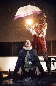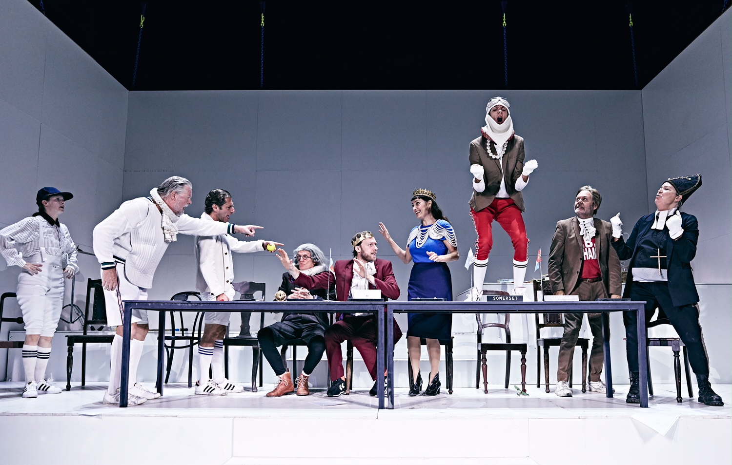 Scenen ser tom og efterladt ud. Ingen kulisser. Ingen farver. Og pludselig kommer der er en skuespiller frem på scenen og fortæller os at; “Det bliver noget rigtig rod….”. Publikum griner lidt nervøst, men er med på præmissen om en Shakespeare-tornado, hvor Richard bliver til Henry, som bliver til Edward og så til Richard igen. Og så er vi med på at i Shakespeares fortællinger kan man altid regne med, at man ikke kan regne med noget eller nogen.