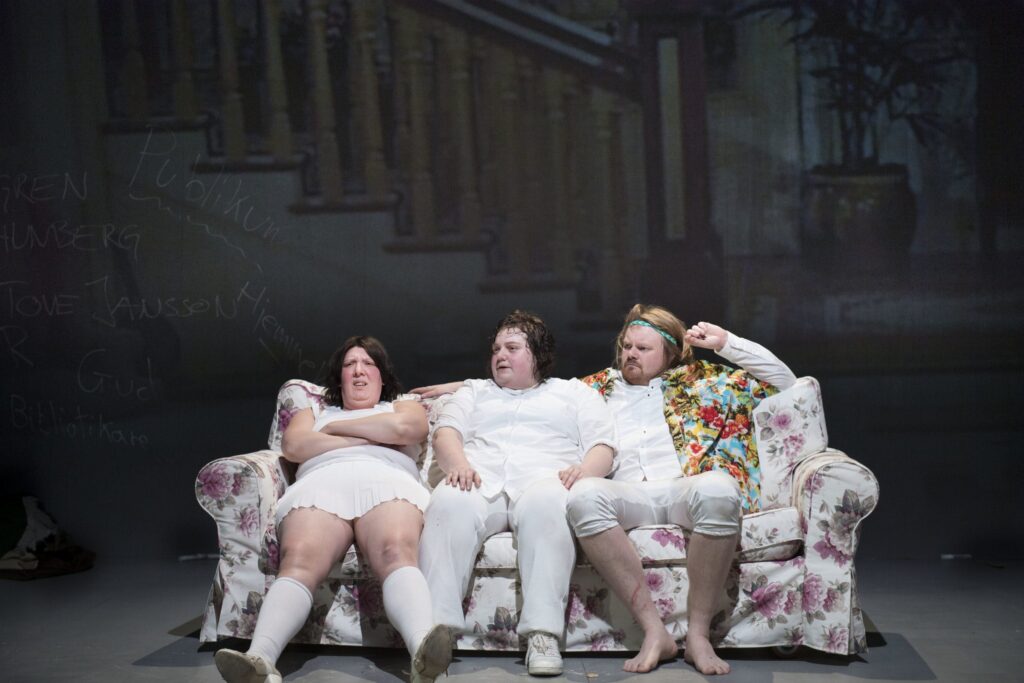 Det kan lyde overvældende og dét er det i og for sig også, da jeg ikke på noget tidspunkt synes at stykket har nogen egentlig substans. Det lyder i sig selv meget negativt, men sådan er det bestemt ikke ment. For det gør ikke så meget at alle forestillingens elementer stikker i forskellige retninger, for de grænseoverskridende scener og de modige og fuldt engagerede skuespillere fører os igennem forestillingen med både tåkrummeri og grineflip.