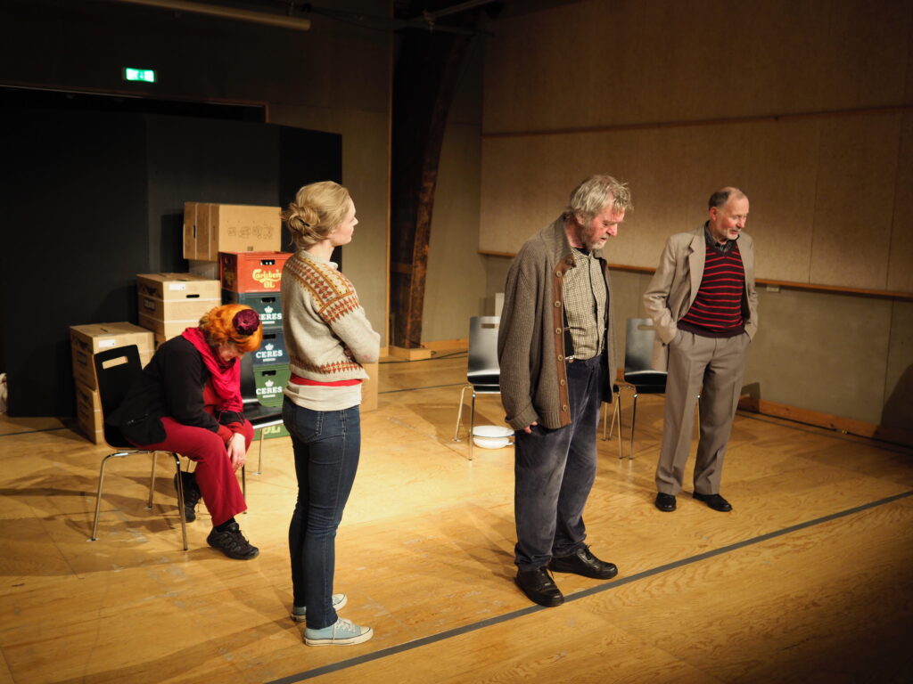 For at tydeliggøre hvorfor ’Edit en oprører’ ikke fungerer, er jeg nødt til at starte et sted. Og hvad er bedre at starte med end manuskriptet, nu hvor sproget er forestillingens omdrejningspunkt. Alle replikkerne virker unaturlige, både i ordlyd og fremførelse. Jeg er i hvert fald aldrig stødt på nogen, som i daglig tale bruger udtryk såsom ”mit unge hybenhjerte”. På grund af kostumerne og den simple scenografi har jeg svært ved at placere historien tidsmæssigt. Det er først idet Edit nævner Metoo-bevægelsen, og da de tre ældre skuespillere trækker hver deres mobiltelefon op af lommen, at det går op for mig, at ’Edit en oprører’ skal forestille at foregå i nutiden.
