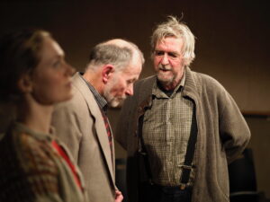 Skuespillerne leverer ikke en overbevisende præstation. Der er ingen følelsesmæssige skift i deres mimik og bevægelserne på scenen føles påtagede. Det er vigtigt, at man som skuespiller selv tror på det man formidler, for hvordan skal publikum ellers blive overbevist? Scenografien er desværre heller ikke noget specielt. Der står et par stole på scenen og i baggrunden er der opbygget en stabel af flytte- og ølkasser. Kasserne, og den hvide teaterdør som er placeret i den ene side af scenen, tjener intet formål for historien.