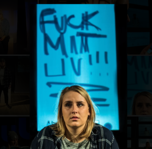 Selvom hun står helt alene på scenen, møder vi også hendes venner på de sociale medier, som vi følger med i på de hvide lagners projektioner. Det er et virkemiddel der fungerer overordentligt godt og skaber et ret rammende billede af, hvad nutidens ungdom vokser op i. En verden hvor man aldrig rigtig ”bare er sig selv”, selvom man sidder alene oppe på sit værelse. Der er altid lige en festlig story på Snapchat, tonsvis af perfekte kroppe og idealer på Instagram, der skal likes, og en facade der skal passes og plejes på Facebook.