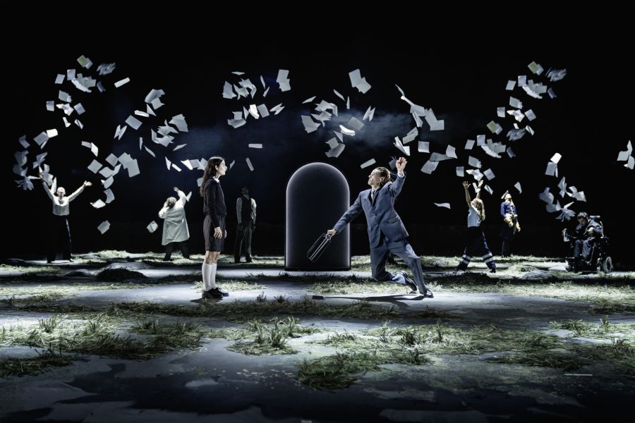 Det er Laura Løwes utroligt vellykkede scenografi og kostumearbejde, der gjorde størst indtryk på mig. Særligt i 2. akt kommer scenografien til sin fulde ret. Her ser vi højthængende både svæve rundt i luften. På fin vis indkapsler det stemningen af, at vi befinder os i stedet mellem drøm og virkelighed. Gulvet er beklædt med bunker af græs, der konstant roterer i lokalet og kaster menneskene rundt i deres forpinthed. Som en lim på det hele høres tonerne af Marie Kildebæks vokal, der på én og samme tid er både foruroligende og hypnotiserende.