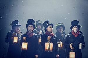 Men her i teatret oplever vi, at den egoistiske Scrooge på lykkelig vis indser vigtigheden af både medmenneskelighed og hjertevarme. Vi ser dette ske gennem flere lag. Foruden fortællingens fortid, nutid og fremtid ligger der også et lag mellem os i salen og den fiktive historie – nemlig det lanternebærende julekor, som samtidig fungerer som fortællere. De synger salmer for os og hjælper os ind og ud af historien.