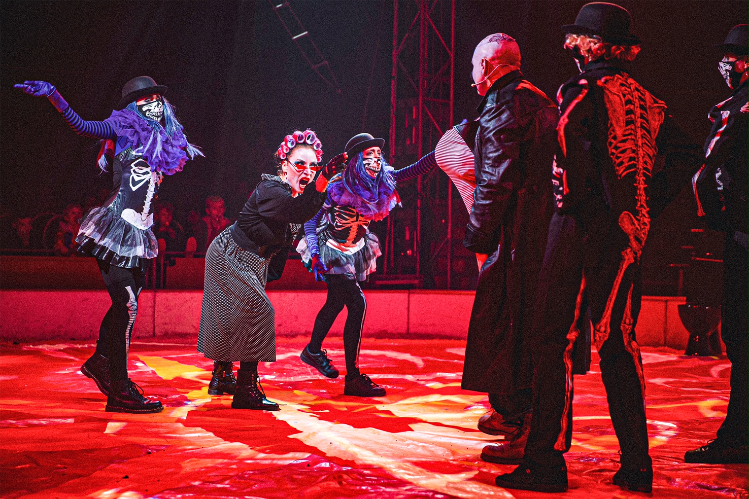 ”Mine damer og herrer og nonbinære!” Sådan starter et inkluderende, semipolitisk, uhyggeligt og sjovt cirkusshow. Patrick Spiegelberg i rollen som cirkusdirektøren har skabt en cirkusrutine bestående af en masse skøre eksistenser, så som den blinde knivkaster, fru Drageånde og ikke mindst trapezgruppen ”flagermusene” fra Wuhan Clan.