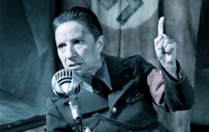Ina-Miriam Rosenbaum spiller Joseph Goebbels med en underfundig blanding af charme, sørgmodighed og ondskab. Karakteren bliver til et sindssygt sørgeligt vanvid fanget i en lille menneskekrop. Hun er tryllebindende! Søren Bang Jensen er flot i bordeaux. Den høje mand i kvindedragt er virkelig en eminent kontrast til den lille nazist i soldateruniform. Hans mimik er virkelig fin. Hans overgange mellem det komiske og det dragende er ret betagende.