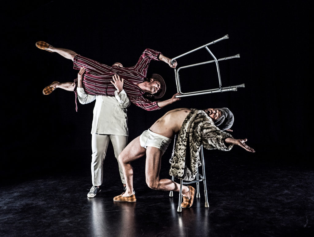 Idet vi træder ind i salen, bliver vi ved indgangen budt velkommen af to mænd, begge klædt i morgenkåbe, med hver deres rollator. Efter at have set hvordan de langsomt og rystende gør entre på scenen, havde jeg aldrig forestillet mig, at jeg 30 minutter senere ville være vidne til, at de pludselig hopper rundt og laver badutspring. Udover de to mænd i morgenkåbe medvirker der også en syngende kvinde, en muskuløs og skaldet mand med et imponerende skæg og en gut på harmonika.