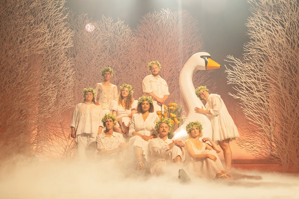 Den eventyrlige scenografi løfter stemningen fra det ellers lidt tunge emne. Det er en fornøjelse at kigge på de smukke papirstynde træer, og se hvordan årstiderne skifter og skuespillerne går fra badetøj, til regnjakker, til flyverdragter – for til sidst at ende i det håbefulde forår.
