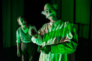 De mange pessimistiske og nybearbejdede udsagn mister desuden gennemslagskraft, da mange af os i den seneste uge har kunnet læse en stor del af disse små humørbomber på teatrets facebook-side. Og ja, de fremkaldte grin, da de dukkede op i newsfeedet, men det gjorde også at gentagelsen i denne nye kontekst på scenen fejlede. For lige det havde vi jo allerede moret os over.
