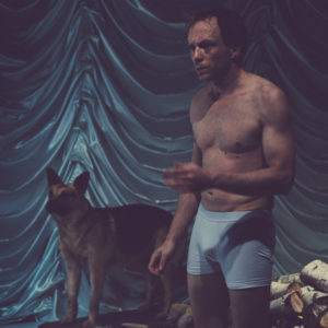 ’Mand – Kvinde – Hund’ leger og eksperimenterer med scenekunsten på en måde der får os til at tænke. Tænke over den verden og den tid, vi egentlig lever i. Morten Burian bruger Edith Södergrans digte og egne tekster til at tage fat i livets store spørgsmål suppleret med Jeleh Negaris smukke og dystre musik. Jeg er gennem hele forestillingen interesseret, imponeret og bliver konstant fordret med flere smukke og meningsfulde ord.
