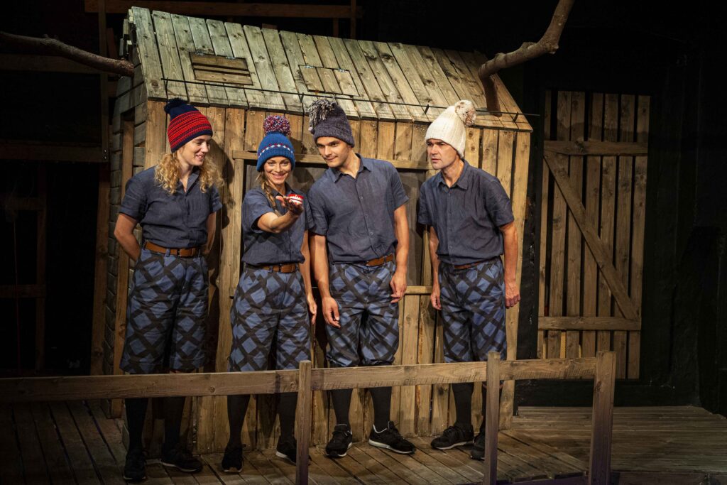 Bag det store røde scenetæppe er der et træhus i et stort træ. I træet bor fire venner i ens uniformer. Det er som en spejderuniform, der forlanger at man har det sjovt. De fire venner bliver fra tid til anden nærmest ramt af et rumpenisse-syndrom. I stedet for at spørge ”hvorfor?” hopper de rundt på scenen og råber ”jeg er parat”. De små intermezzoer med lalala-sange bliver måske en anelse for lange engang imellem, for man mister koncentrationen en lille smule. Det knirker og brager når de fire venner løber rundt og op i træhuset. Den gode stemning vælter udover publikum og når stjerner på magisk vis blinker på træhusets tag bliver alle ret så begejstrede.