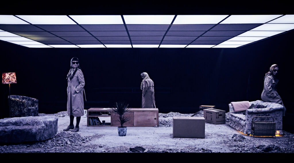 Der står en scene i midten af en teatersal. Vi bliver sluset ind i rummet, en efter en. Nogle er sammen, andre er alene. Alle med fornuftig afstand til hinanden. Nogle er henne og snuse til det grus og de mellemstore sten, som ligger på scenegulvet. En scene bygget på ruiner. En kvinde til min venstre side siger at; ’det er vistnok en jødisk helligdag i dag’. Og ja, i dag er det den 28. september og her fejres Yom Kippur, forsoningsdagen. Og det kan den jødiske (og kommunistiske) mormor, spillet af Ina-Miriam Rosenbaum fortæller os meget mere om. Hun har nemlig styr på traditionerne.