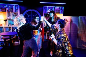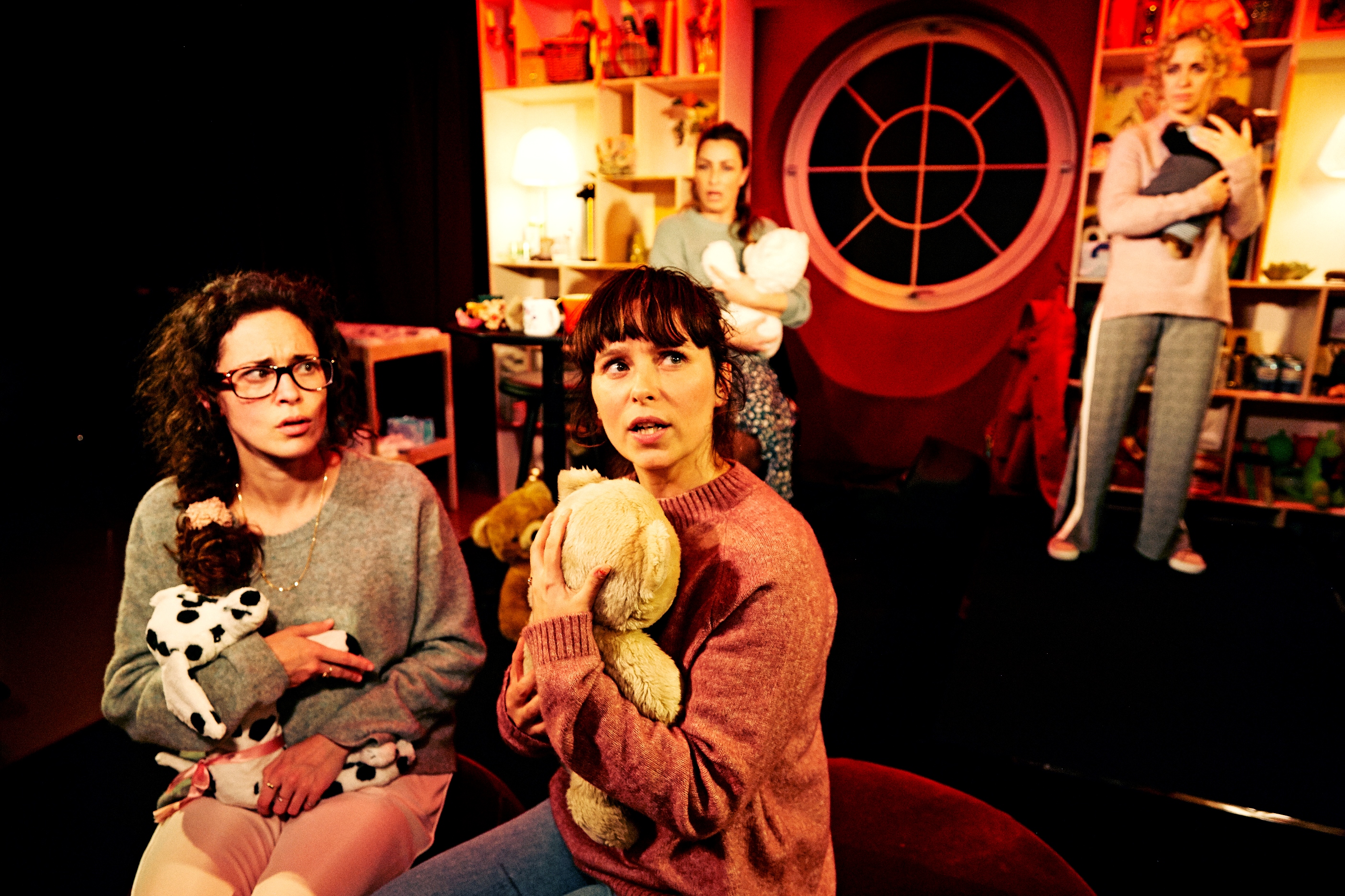 Denne forestilling er uden tvivl lavet til mødrene selv. Jeg mærker tydeligt, at jeg ikke kan nikke genkendende til så mange af de situationer og frustrationer, karaktererne fortæller om. Jeg har ikke selv været i det. Jeg har ingen børn eller nogen særlig tilknytning til småbørn. Ergo er der rigtig meget, jeg mister i det, resten af publikum griner højlydt af. Dermed ikke sagt, at jeg ikke grinede på noget tidspunkt. Det gjorde jeg bestemt. For med de fire spilleres komiske talenter og sjove fremlæggelser af teksterne, kan man ikke lade være. Dog står jeg af og til lidt af, når der veksles mellem selve mødregruppehistorien og de resterende fortællinger, hvor karaktererne lige pludselig ikke er de karakterer de er i mødregruppen. Det bliver for mig lidt rodet og forvirrende.