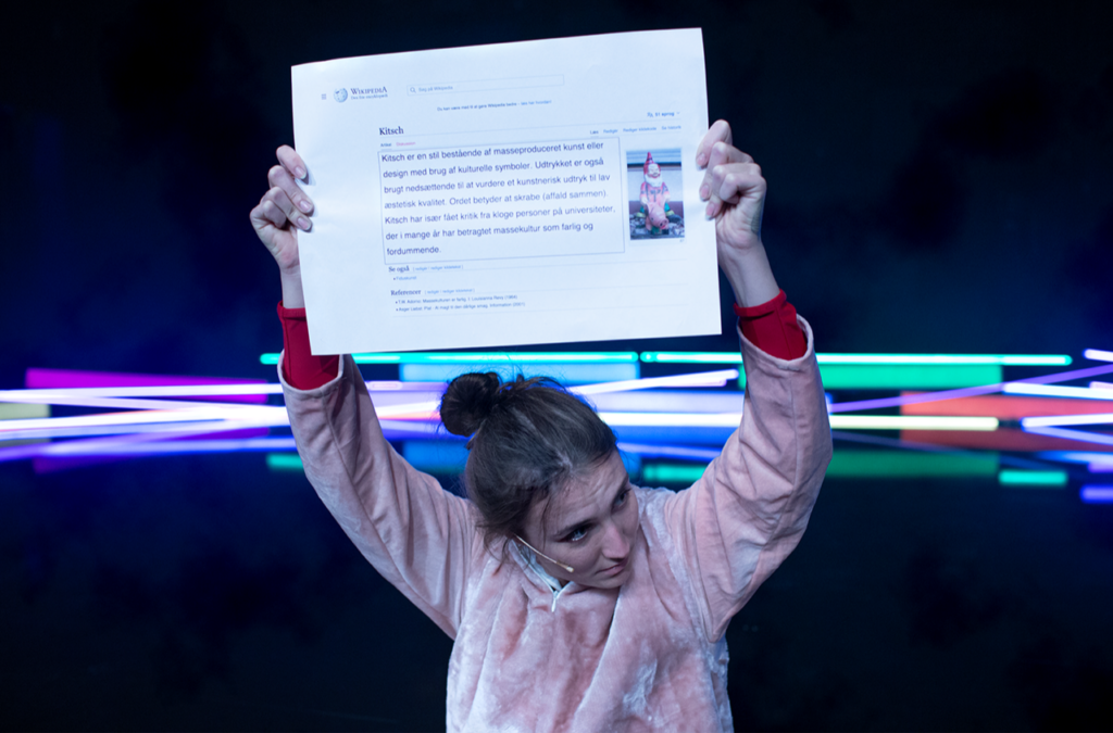 Ødipus Kitsch er kitschet, corny, overdrevet, selvsmagende og virkelig god underholdning. Forestillingen er første del af instruktør Emil Rostrups triologi som huskunstner i Aveny-T. Ødipus Kitsch er skabt på ganske kort tid i et samarbejde med Sarah Simone Jørgensen, der som eneste medvirkende bærer forestillingen med den største lethed. Ved forestillingens start blev publikum i uvant stil ført op på scenen i Aveny-T’s teatersal, hvor der var skabt en mere intim scene til Ødipus Kitsch. Det var en effektiv måde, at skabe en nyt teaterrum, hvor forestillingen kunne udfolde sig med sine store armbevægelser. Der blev brugt farvestrående scenografi, kiksede kostumer og insisterende popmusik til at skabe forestillingens kaosagtige og smittende energi.