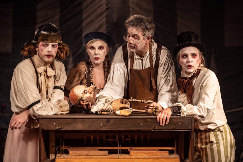Vi kastes ind i et musikalsk, spøjst og dystert univers. Forestillingen har et særpræget udtryk med en kombination af victorianske kjoler og sprød steampunk. Det er rigtig fedt, og endnu flottere, at det gøres med få og effektive virkemidler. Det er også en god beslutning at skrue op for de ydre faktorer, da selve fortællingen efterhånden er lidt udtrådt.