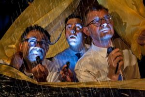 Det faste inventar i den politisk-satiriske revygenre finder vi også på teaterbåden Café Liva i forestillingen ‘Pladderhumorister – De frelste synger videre…’: Fire joviale herrer med glimt i øjet møder os i øjenhøjde og underholder både med revygenrens faste bestanddele, men også med regulær standup.