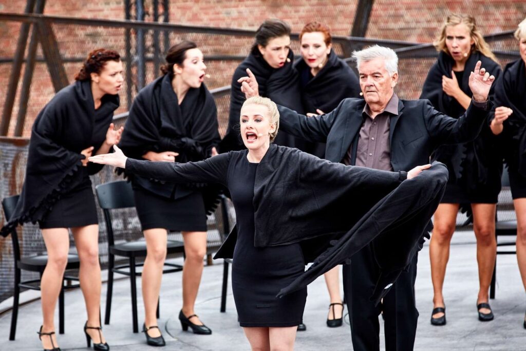 På papiret har det været en god ide, men praktisk er det noget rod, hvor jeg bliver bekræftet i, at udendørsteater ikke altid er vejen frem. Ensemblet skifter mellem stædig indlevelse og ubekvemhed grundet vejrforholdene. De vokale præstationer er der ikke en finger at sætte på, og opsætningen i sig selv er mere end seværdig. De små bidder kommer i en fint, mættende strøm, som når man bliver serveret en 7-retters menu på en fin restaurant.