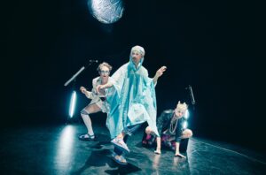 Kalder man på stjernerne, så svarer de. På scenetæppet hænger en sølvpapirs sol. Fem mikrofoner danner en halvcirkel. Publikum sidder med et sædes mellemrum og i sikker afstand fra passionerede spytpartikler. Og der er vidst ingen tvivl om, at alle glæder sig til at se, hvad der skal ske i mørket. Et orakel, iført regnslag, kommer ind. Forestillingen går igang. Kronos går amok og vi følger gladeligt med.