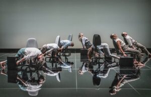 Det er flere visuelt smukke øjeblikke under forestillingen. Det er effektfuldt, når der bliver talt direkte til publikum, men de mange monologer, kan næsten også få en til at savne noget mere dialog mellem skuespillerne. For der er mange fortællinger og mange stemmer at holde styr på. Attachemapper står stabler som tårne og grå kontorstole danser rundt om sig selv. Scenografien er smuk og gruopvækkende på samme tide. Verden er i krig. Røg og støv hvirvler rundt og minder os om kaos. Det er overvældende at sidde nede blandt publikum. Især når man bliver bedt om at tage hjem – for hvad nu hvis der skete noget lige nu og her.Hele verden er farlig og intet sted er sikkert.