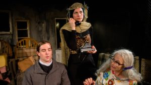 Selve scenen og scenografien er spændende at gå på opdagelse i. Imponerende at der nærmest er styr på kaoset. Derudover kan jeg godt lide, at scenen er lille og vi er tæt på skuespillerne. Ydermere kan jeg godt lide skuespillernes præstationer. De er gode sammen og jeg kan godt lide deres sprog og accenter. De små biroller er også sjove og fungerer som en virkelig fin kontrast til moderen og datteren. Scenerne med den “tredje” person er i hvert fald højdepunkterne.