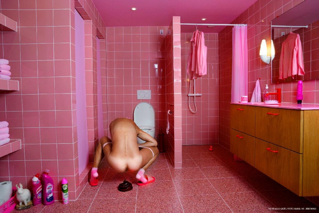 I ’THE FEMALE GAZE’ møder vi Line. Med Lines historiefortælling føres vi gennem et hav af stereotyper og selvbilleder, som nutidens kvinder ligger under for. Herunder prinsessen uden numsehul, den kvindelige rengørings- og udpumpningsmaskine og mandenedlæggeren med stilethæle som våben. Frustrationen er ikke til at tage fejl af og Line når også frem til, at hun ikke vil være med mere. Hun vil ikke længere vurderes, begæres og kasseres af ’manden’, som konsekvent i forestillingen kaldes Lille Jan.