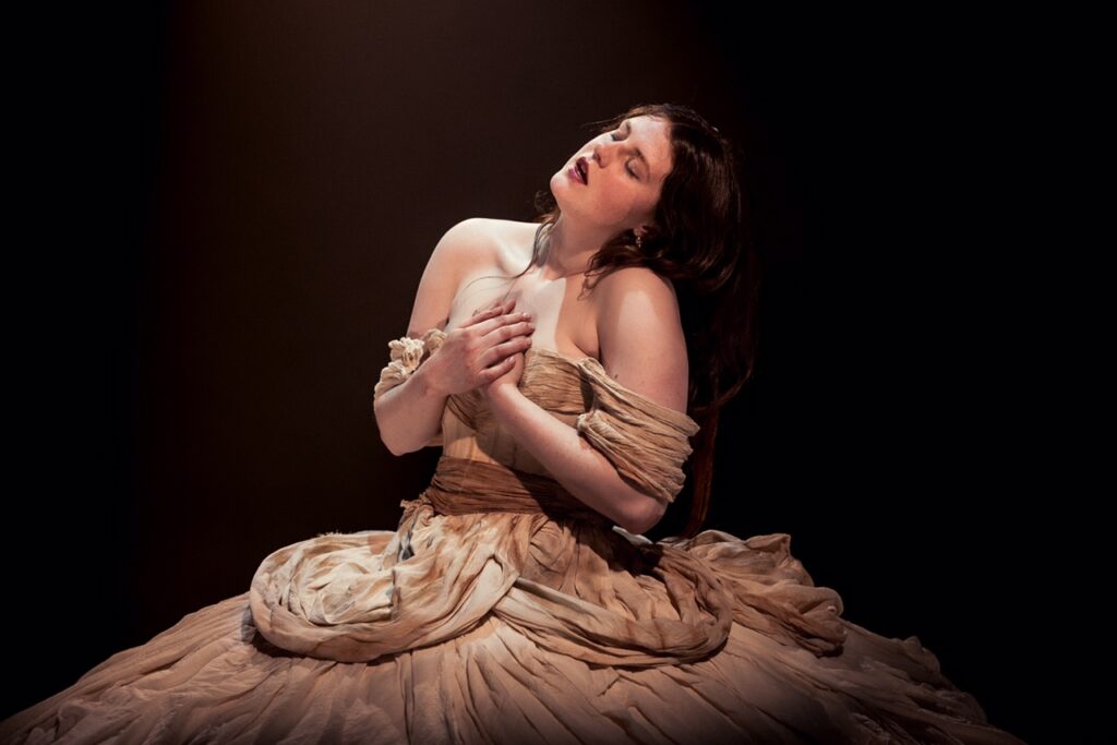 En kvinde, Sophia Luna Portra, iført en kæmpe, næsten statuelignende kjole i middelalderligt design sidder fasttømret midt på scenen. Omkring hende står violinist Patrick Rathbun, guitarist Emil Palme, bassist Ditte Amby og trommeslager Jakob Folke Ivarsson, også iklædt antikke klæder. Publikum har fået at vide, at performancen kan opleves stående, siddende og liggende, og efter at jeg har taget de visuelle dimensioner ind, lægger jeg mig ned og overgiver mig til lyden.