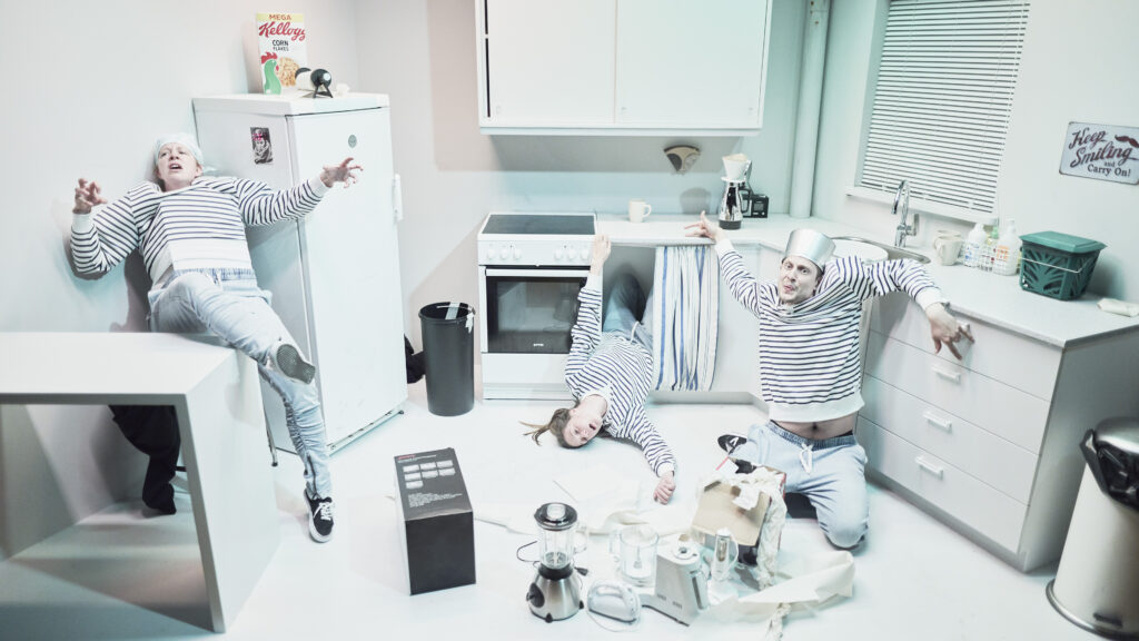 Inde i den varme teatersal bliver jeg mødt af et skævt køkken. Gry Guldager, Stine Gyldenkerne og Peter Høgsbro, de tre medvirkende, kigger søgende i henholdsvis skuffer, skabe og et køleskab med et billede af David Bowie. Lyset slukkes, og halvanden times fænomenalt godt brok kan begynde.