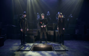 En kæmpe sorg blev i aftes krænget ud på Svalegangens store scene i form af iscenesættelsen af Søren Huss’ melankolske sange fra albummet ’Troen & Ingen’. Det hele starter lige på og hårdt med, at verden og scenen i bogstaveligste forstand ramler sammen for øjnene af os – vælter og krakelerer. Vi lærer sorgen at kende, før vi kender karaktererne. Vi får ingen anden forhistorie end den, du måske kender i forvejen; Søren Huss mistede på tragisk vis sin kæreste i en trafikulykke for ti år siden og stod derefter alene med deres fælles datter.