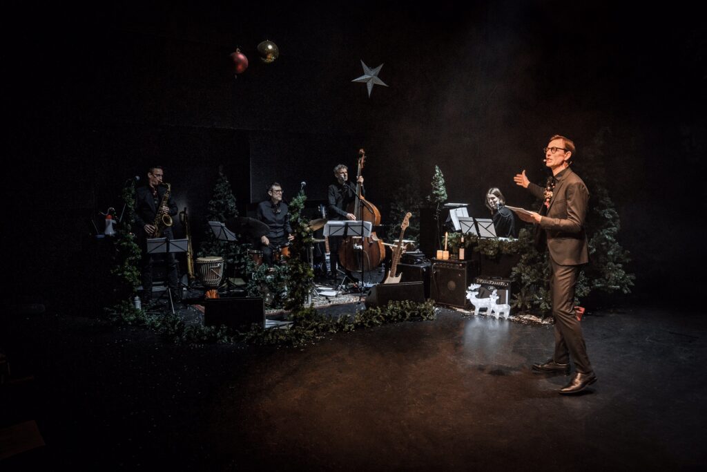 For selvom showet både er morsomt og hyggeligt, byder det også på kant, kritik og noget at tænke over. En kabaretsangerinde bliver fuld, bandet synger om en mand, som dør fra sin hustru og barn, og en komiker snakker om sterilisation. I korte indskydelser nævnes dokumentaren om krænkelserne på TV 2, at vi i dag er heldige at få en sygeplejerske, hvis vi bliver indlagt, og det efterhånden berømte ”Lev Mette”. Den stadig aktuelle julesang Do They Know It’s Christmas fremføres fremragende af bandet, mens vi får at vide, at vi gerne må donere til velgørenhed. Under hele sangen sidder vi og kigger på MobilePay-numre til henholdsvis Røde Kors, Red Barnet og UNICEF, som dukker op på scenens bagtæppe. Her sidder vi og er fanget i vores egen dårlige samvittighed, mens vi skuler til hinanden for at se, om der er nogen, der finder deres mobiler frem. Enten kan man blive siddende forstenet og lytte til sangen som en god og usynlig publikummer uden at forstyrre, mens den dårlige samvittighed gnaver indeni. Eller også kan man bryde konventionen i teatersalen og hive en lysende mobilskærm frem i mørket for at donere og befri sig selv fra den rådne samvittighed. Showet formår på én og samme tid både at kritisere og hylde julen.