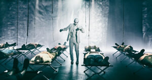 Når vi frarøves synssansen, er det den kropslige reaktion, der kommer i centrum. Jeg har hjertet oppe i halsen flere gange og bliver bevidst om min krop på en anden måde, end jeg normalt ville gøre i teatret. Fordi de visuelle elementer (næsten) er elimineret og kun består af periodiske lysglimt i den hvide tåge, opstår der en kropslig empati og indlevelse med historiens karakterer. Den hårde feltseng gør ondt i ryggen og beskrivelser af forværrelsen i hygiejnen hos karaktererne giver fysisk kvalme.