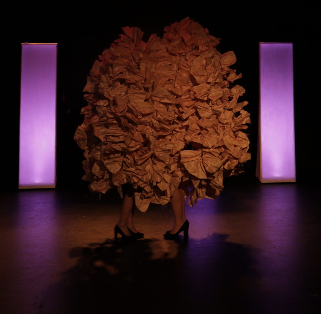 Dette betragter vi som publikum i en forestilling, hvor to kvinder står på scenen og søger fortrolighed med os ved at stille spørgsmål om lyst, om at være tændt og om at være slukket. Ret hurtigt er de blottede – også i den mest bogstavelige forstand. Vi har mulighed for at tænke, hvad vi vil, og måske har vi vores fordomme med os ind i rummet – men her er mulighed for at lade sig befri for disse fordomme og bare sanse. Og betragte. Det gælder både kroppene og de scenografiske elementer, som har en Louise Bourgeois-agtig ekpressivitet over sig, og som man garanteret kan læse en masse symbolik ind i, men som man også blot kan betragte, sanse og måske associere ud fra.